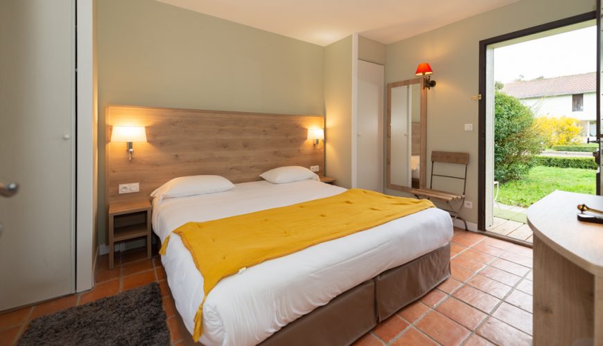 La chambre standard, située dans l’annexe de l’hôtel, ouvre directement sur le jardin et donne accès au parc de l’hôtel ainsi que les autres installations du Club House, restaurant et boutique situés à quelques pas de l’hôtel.