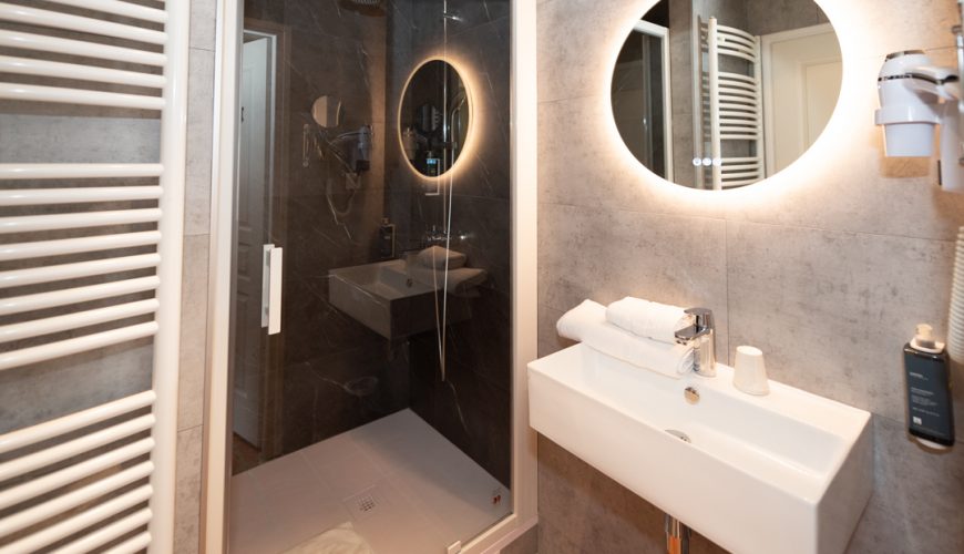 Équipements en chambre : Accès Internet Wi-Fi, télévision TNT, coffre-fort, petit réfrigérateur à disposition, téléphone, salle de bain avec douche, sèche-cheveux.